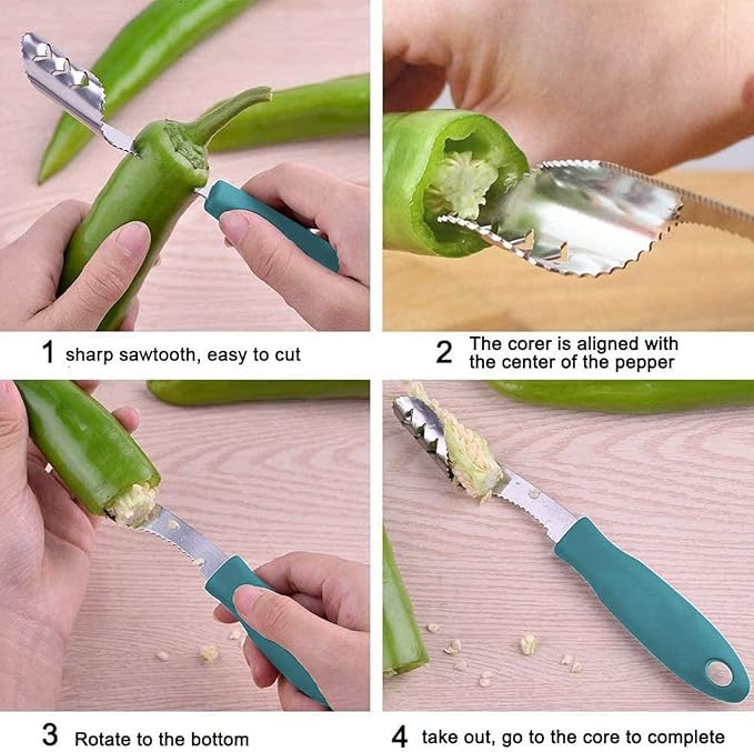 متعدد الاستخدامات: مثالي لإزالة بذور الفلفل والهالبينو أو لتقطيع رؤوس الخضروات والفواكه بسهولة وسرعة.