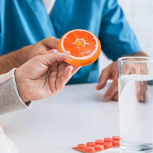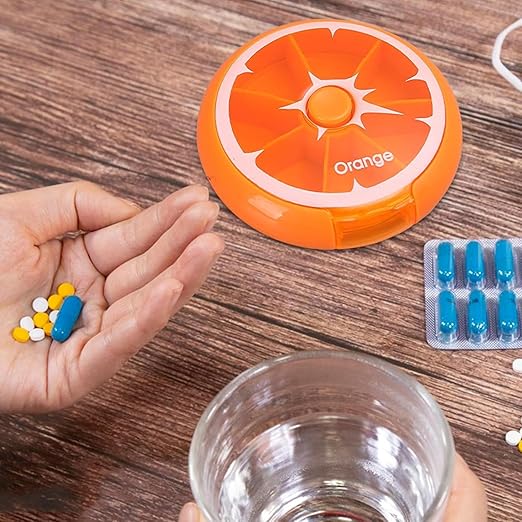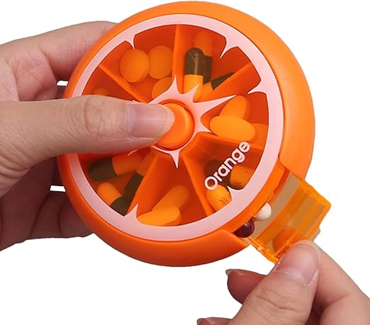 منظم حبوب دوار مبتكر (7 أيام) بزر ضغط - برتقالي