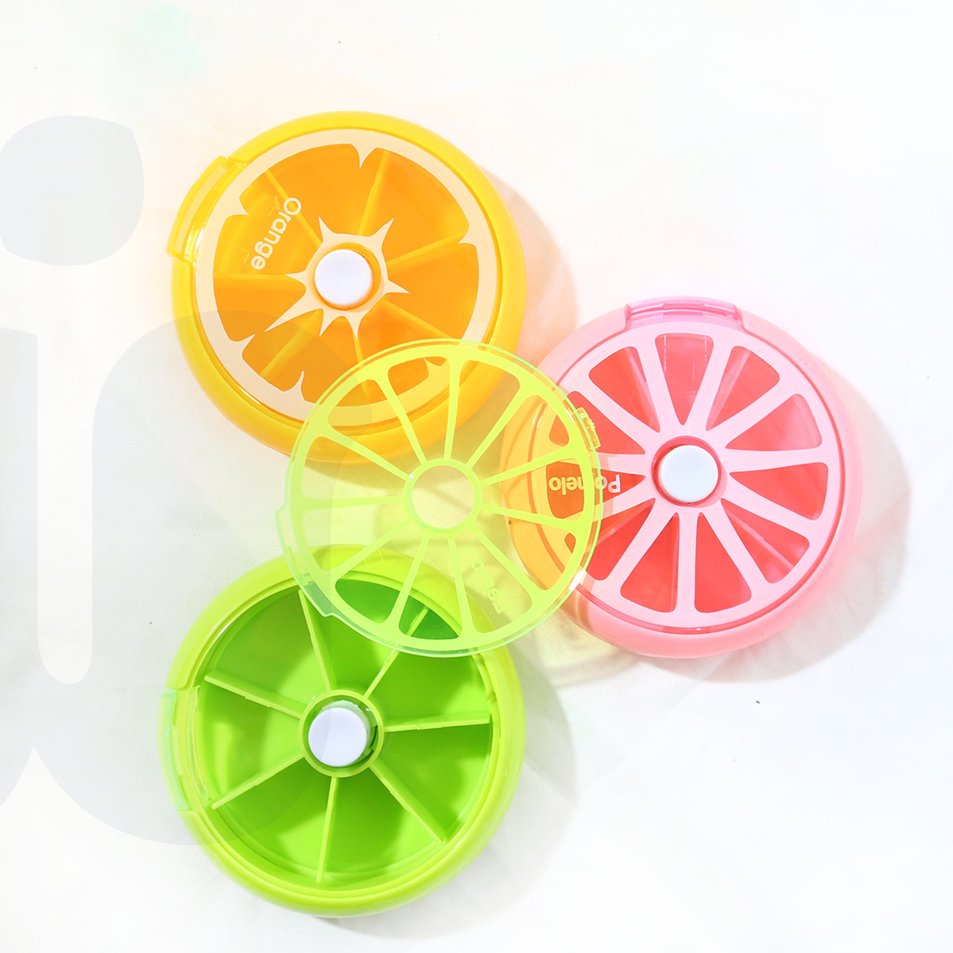 منظم حبوب و فيتامينات محمول بتصميم فاكهة لطيف – علبة دواء للسفر تحتوي على 7 فتحات، متعددة الألوان