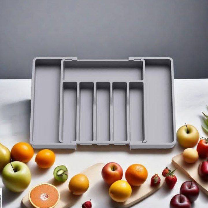 منظم درج عملي يساعد على توفير مساحة التخزين وتنظيم جميع أدوات المطبخ بسهولة. مصنوع من البلاستيك عالي الجودة ومتين، وقابل للتوسيع ليناسب أحجام مختلفة من الأدراج، مع 8 خانات لتقسيم الأدوات بشكل مرتب وعملي.