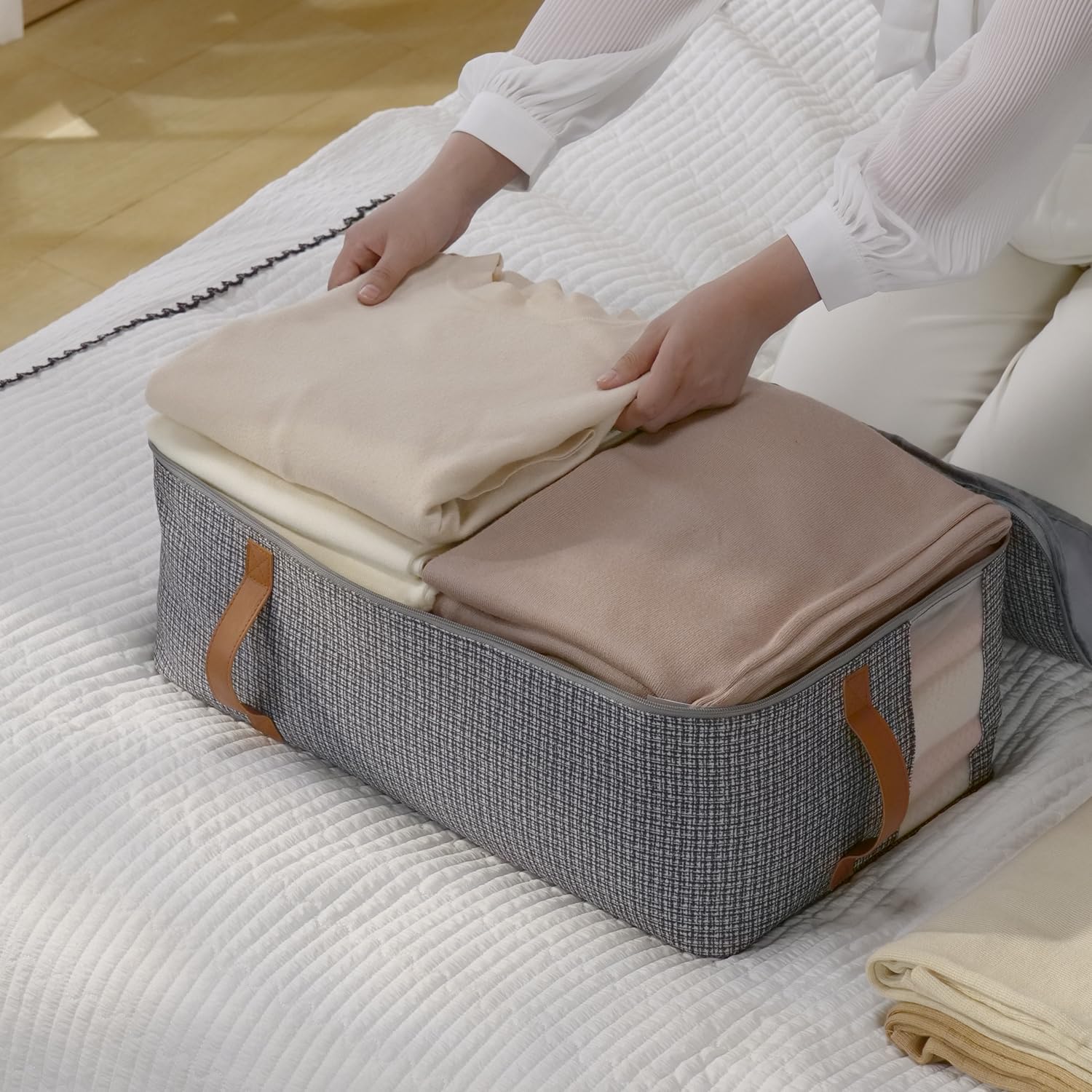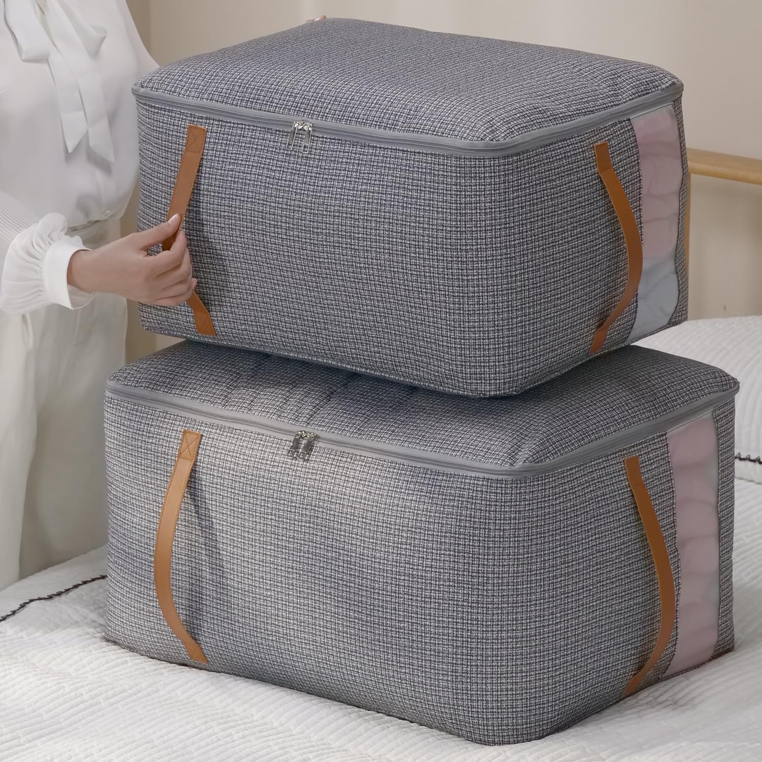 الوصف: منظم تخزين مصنوع من خامة مقاومة للماء لتخزين وتنظيم الأغطية، الوسائد، البطاطين، المعاطف والملابس، مثالي لتوفير المساحة في الخزانة أو تحت السرير