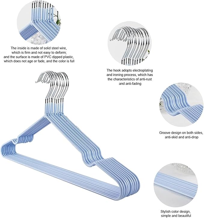 حجم كبير: تصميمها بحجم كبير يجعلها مناسبة لتعليق السترات، المعاطف، والفساتين.طقم متكامل: تحتوي العبوة على 10 قطع، مما يوفر لك كمية كافية لتنظيم خزانتك.