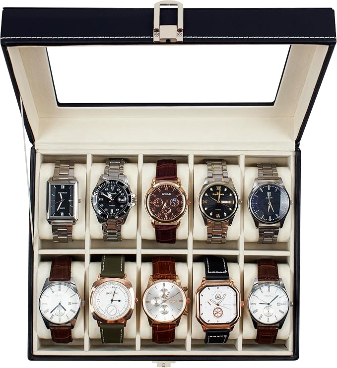 سعة كبيرة: يحتوي على 10 خانات منفصلة، مما يوفر مساحة كافية لتنظيم مجموعة كبيرة من ساعات اليد للرجال والنساء.