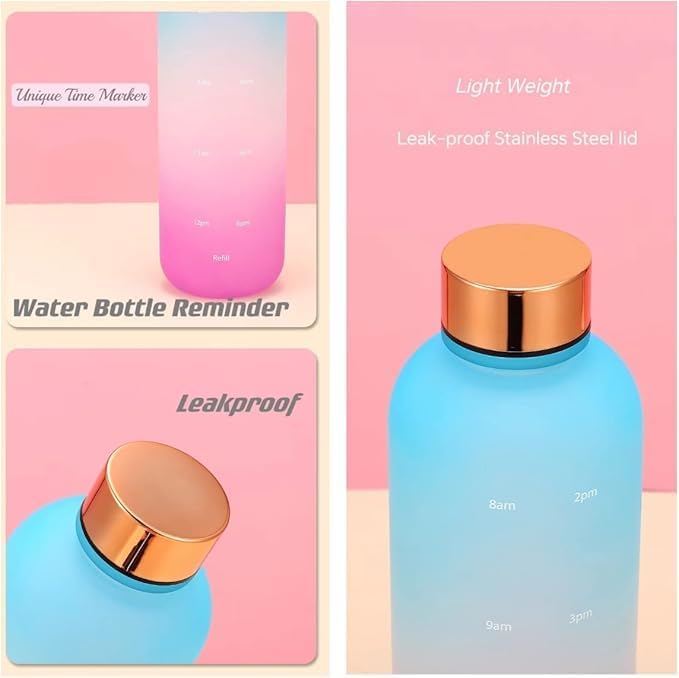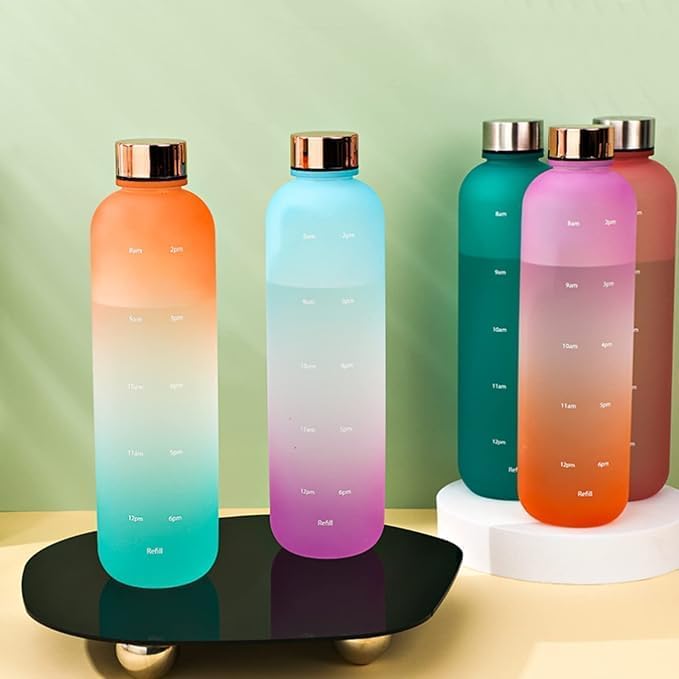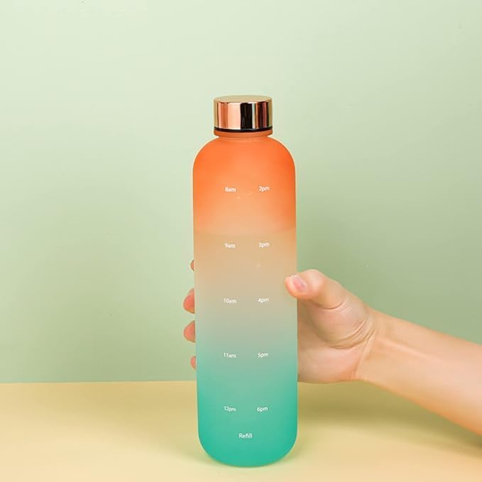 مميزات المنتج:تذكير بالترطيب: تحتوي على علامات زمنية مدرجة على جانب الزجاجة لتشجيعك على شرب كمية كافية من الماء على مدار اليوم.مانعة للتسرب: الغطاء مصنوع من الستانلس ستيل القوي ومصمم بإحكام لمنع تسرب الماء، مما يجعلها آمنة للحمل في حقيبتك.سعة كبيرة: سعتها 1000 مل مثالية لتغطية احتياجاتك من الماء خلال يوم كامل دون الحاجة لإعادة التعبئة المتكررة.خامات عالية الجودة: مصنوعة من مواد آمنة وغير سامة، ومقاومة للكسر، مما يجعلها منتجًا عمليًا ويدوم طويلًا.