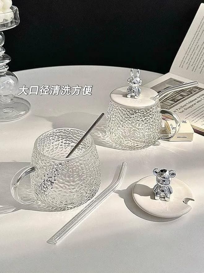 تصميم فريد: يأتي الطقم بمجسين زجاجيين مع أغطية على شكل دب، مما يضفي لمسة من البهجة على مشروباتك.