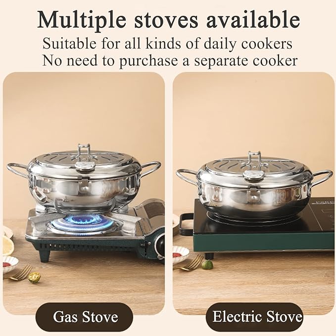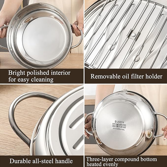 غطاء محكم: الغطاء يمنع تناثر الزيت الساخن أثناء القلي، مما يجعل تجربة الطهي أكثر أمانًا ونظافة.