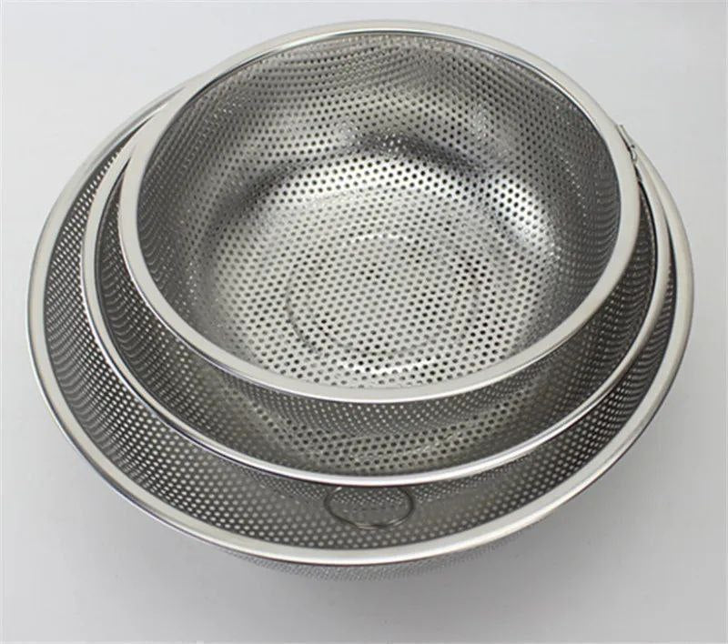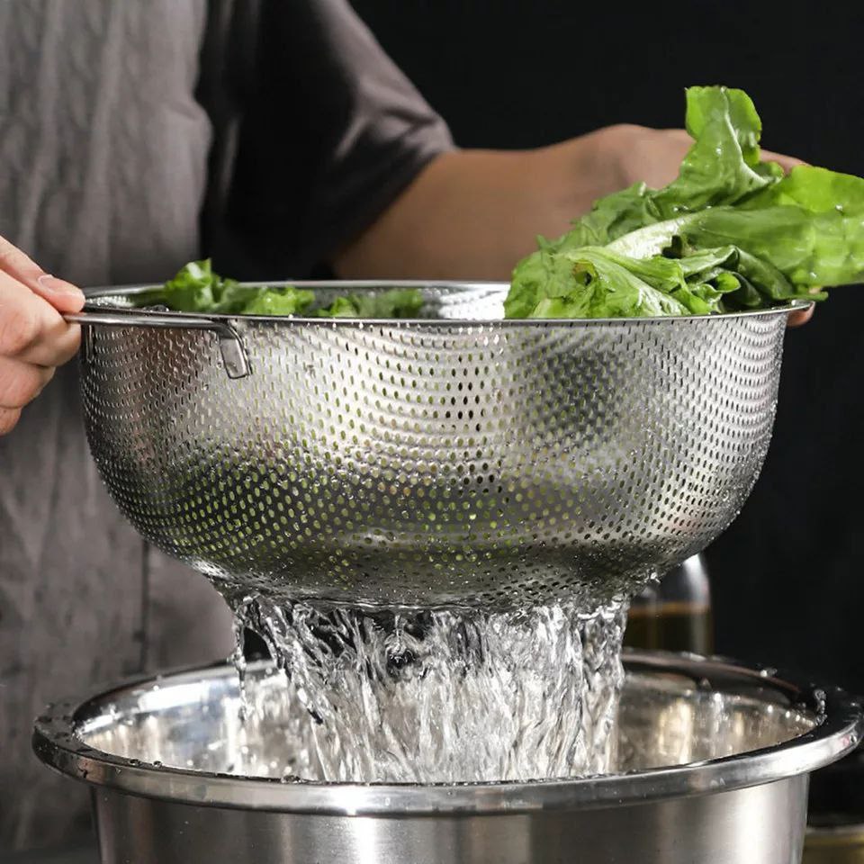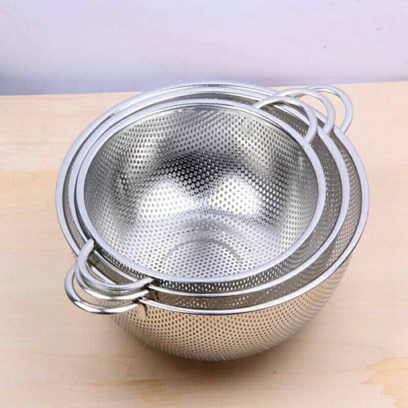 طقم مصافي خضروات عالي الجودة مصنوع من الستانلس ستيل المقاوم للصدأ، يأتي بثلاثة مقاسات مختلفة لتلبية جميع احتياجات المطبخ. خامته ممتازة ومستورد، مناسب لتصفية الخضروات والفواكه بكفاءة وسهولة، ويتميز بالمتانة وطول العمر.