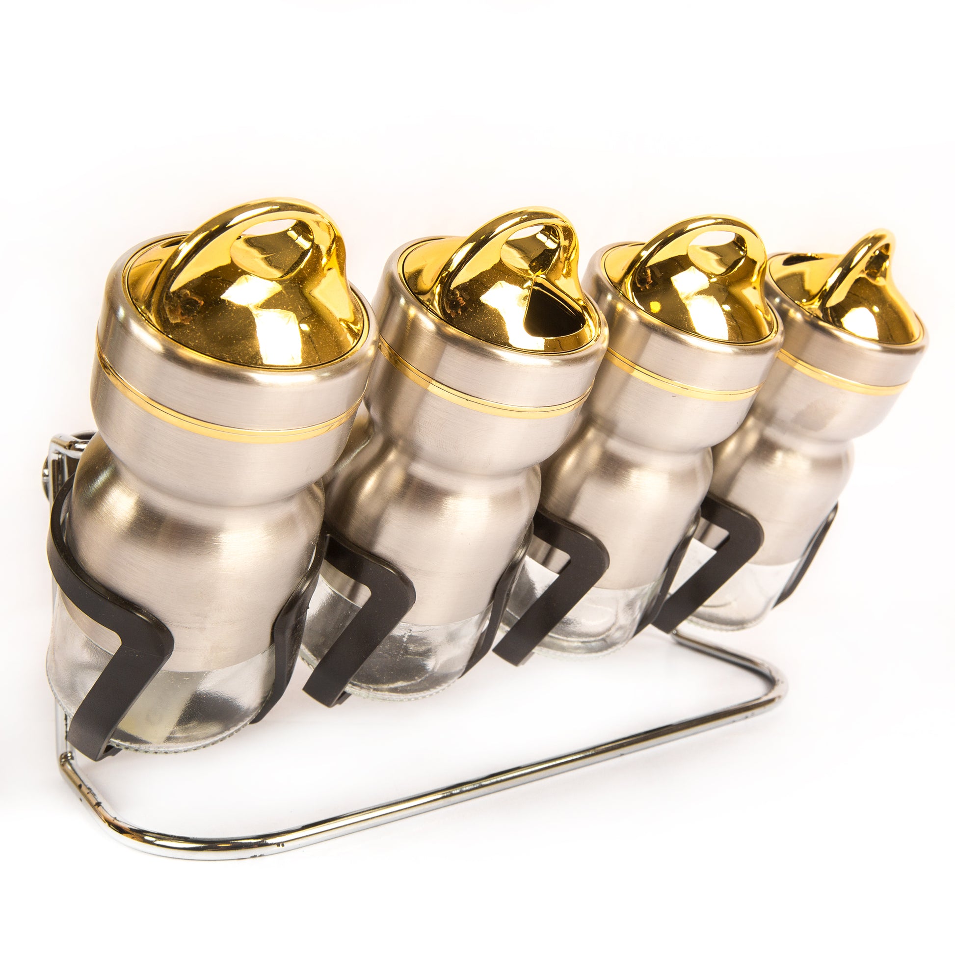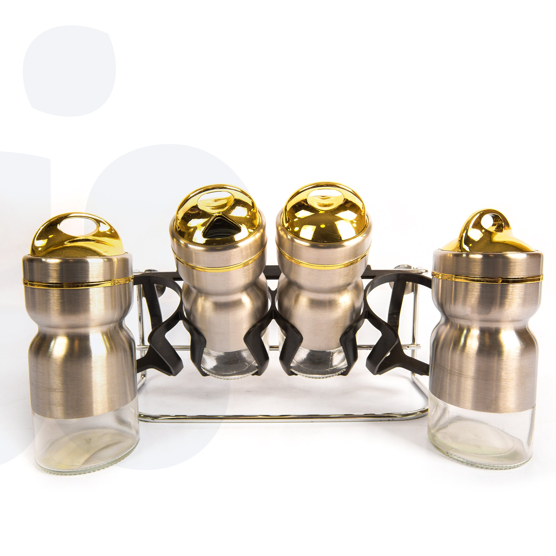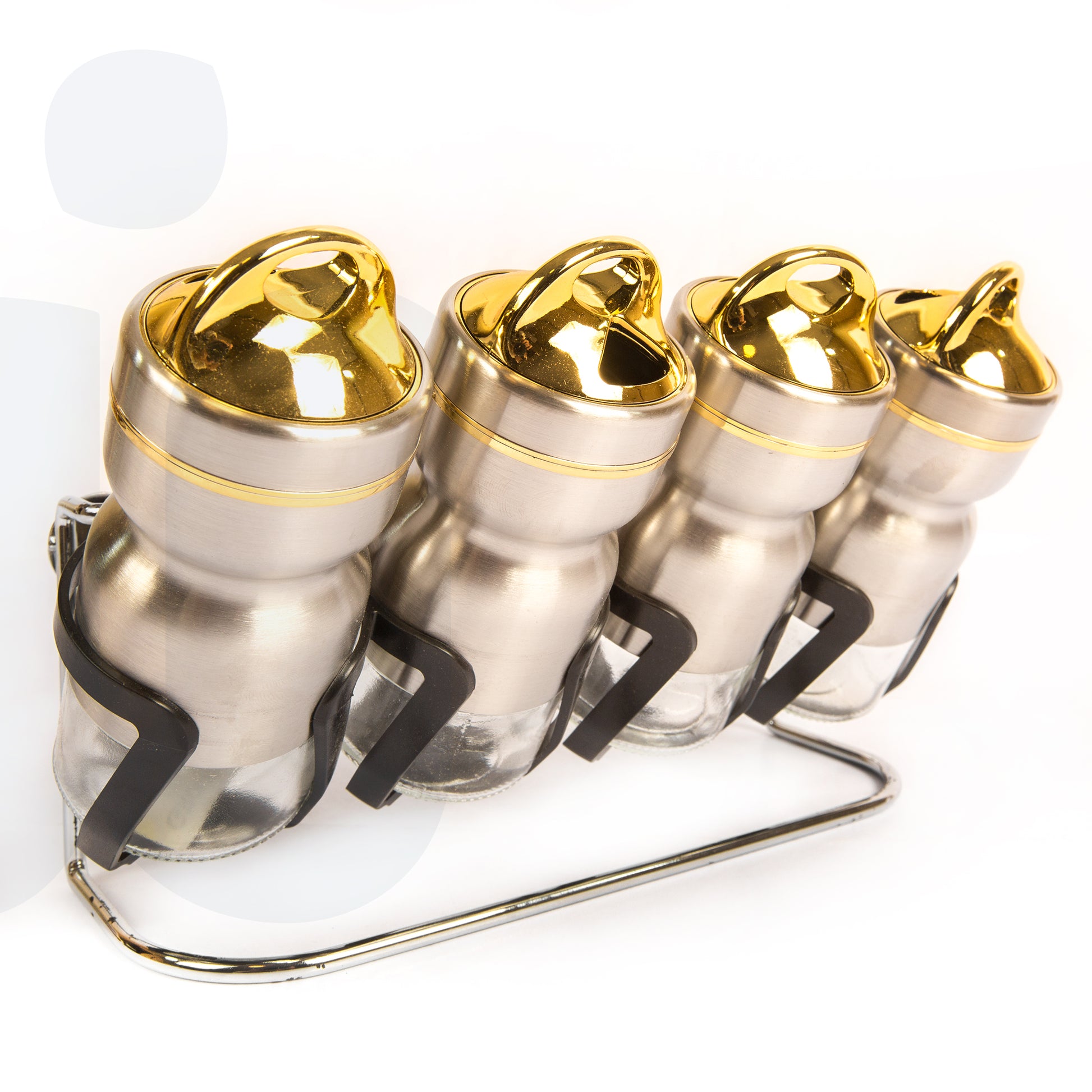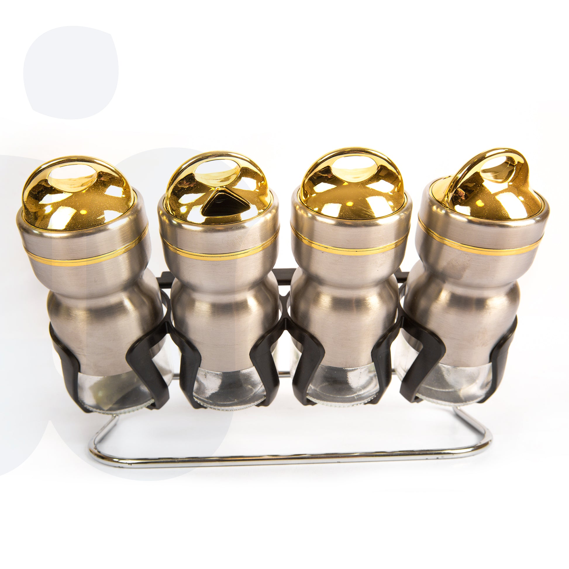 طقم توابل 4 قطع – برطمانات زجاجية مع حامل من الستانلس ستيل