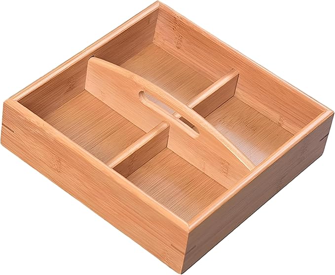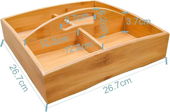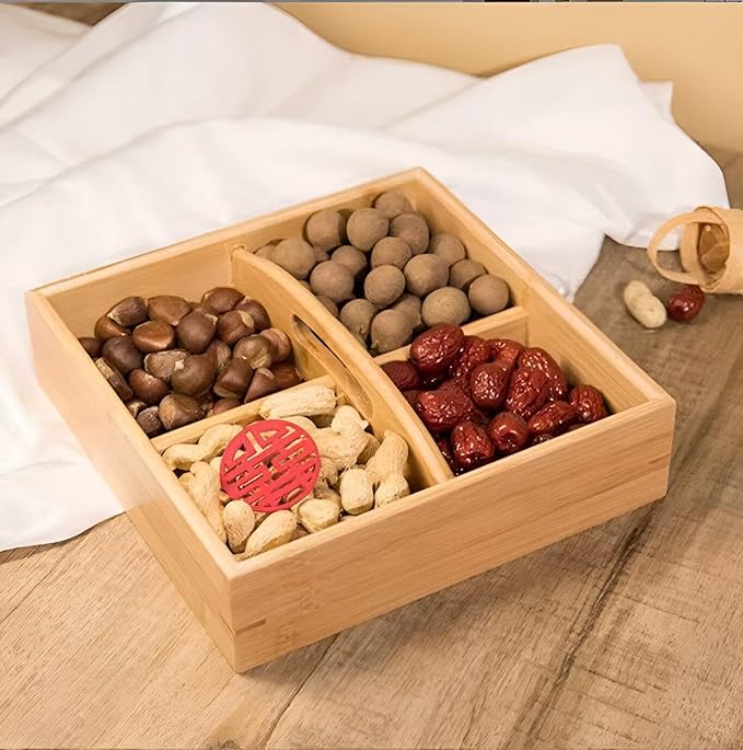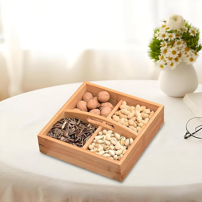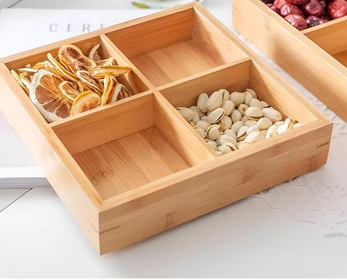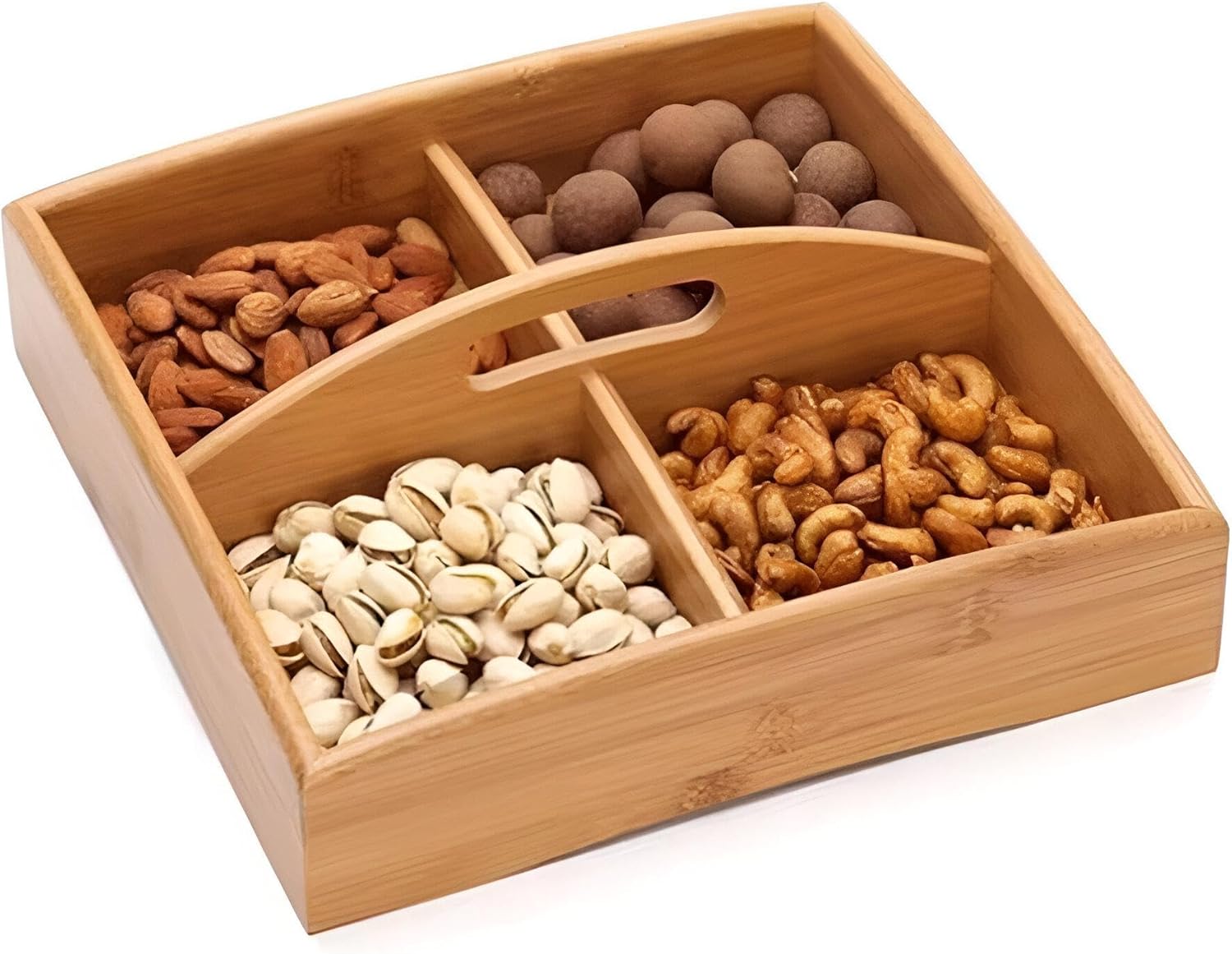 منظّم وجبات خفيفة – صينية خشبية مربعة بـ 4 أقسام