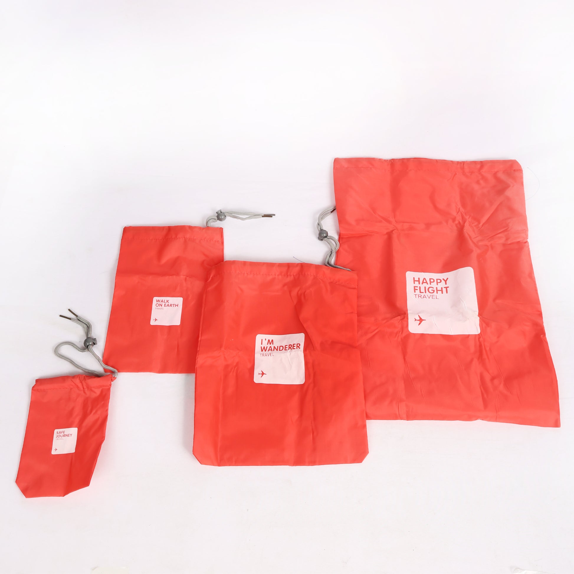 طقم أنيق وعملي مكون من أربع أكياس تخزين متعددة الأحجام، مصنوعة من قماش عالي الجودة بلون أحمر جذاب. مزودة بخيوط شد متينة لسهولة الفتح والإغلاق، مما يجعلها مثالية لتنظيم الملابس، الأحذية، أو الإكسسوارات أثناء السفر أو التخزين المنزلي. تصميم خفيف وقابل للطي لتوفير المساحة عند عدم الاستخدام.