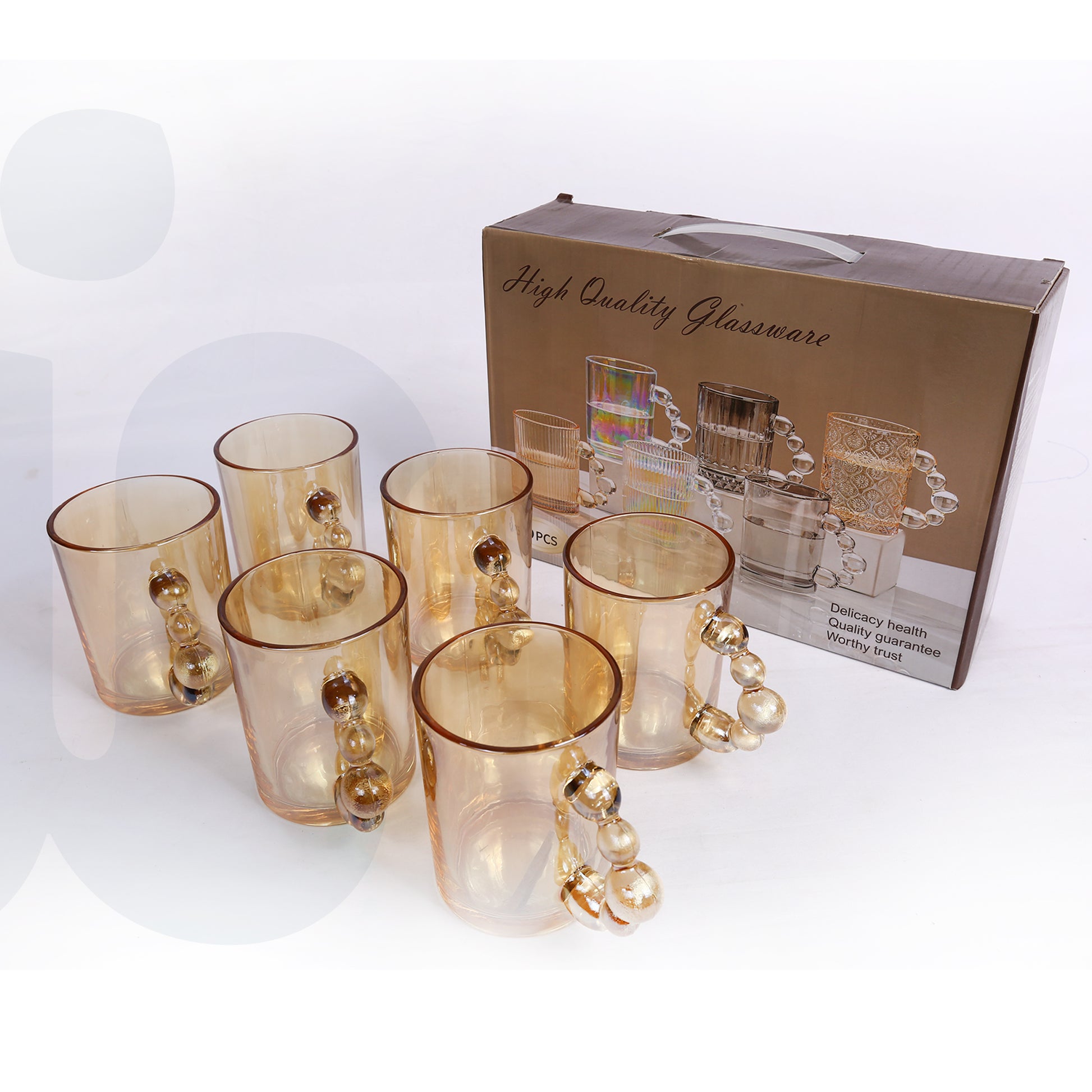 طقم مج بابلز 6 قطع باللون العسلي بتصميم تركي شيك