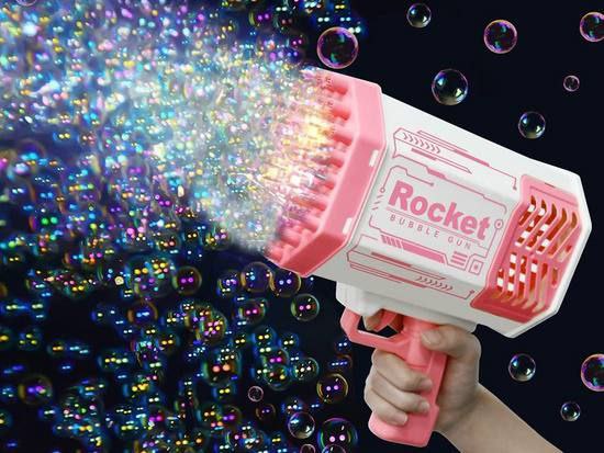 مسدس فقاعات ترفيهي بتصميم بازوكا يطلق مئات الفقاعات في ثوانٍ، مثالي لإضفاء جو من المرح للأطفال والكبار سواء في المنزل أو أثناء الحفلات والمناسبات.