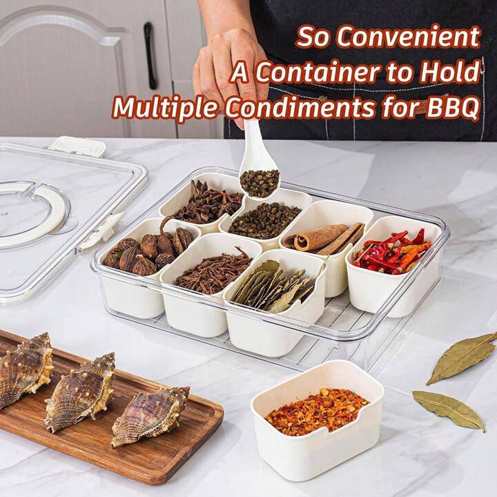 منظم أكريليك شفاف متعدد الاستخدامات مكون من 8 خانات متحركة يمكن تفريغها واستخدام الصندوق كاملاً للتخزين، مناسب لتنسيق البهارات والأعشاب والتسالي والمعجنات والاكسسوارات وحتى الأدوية وحفظ الطعام في الثلاجة