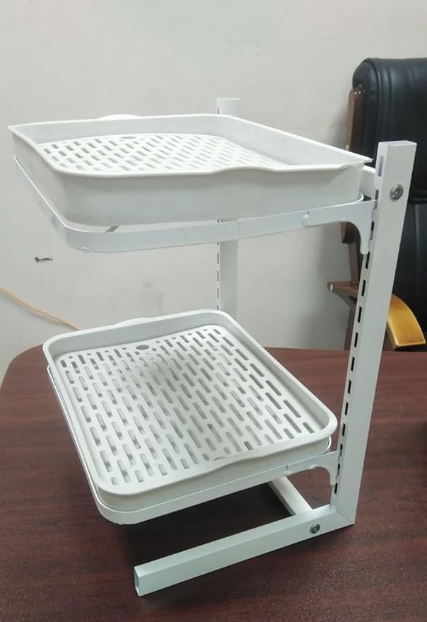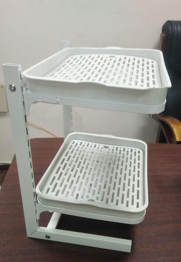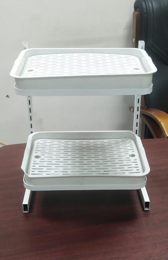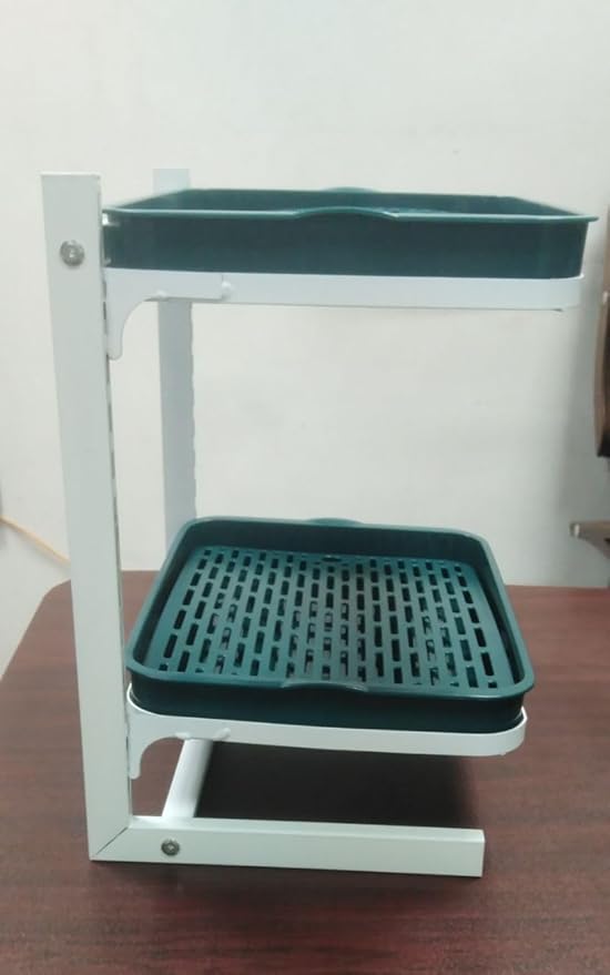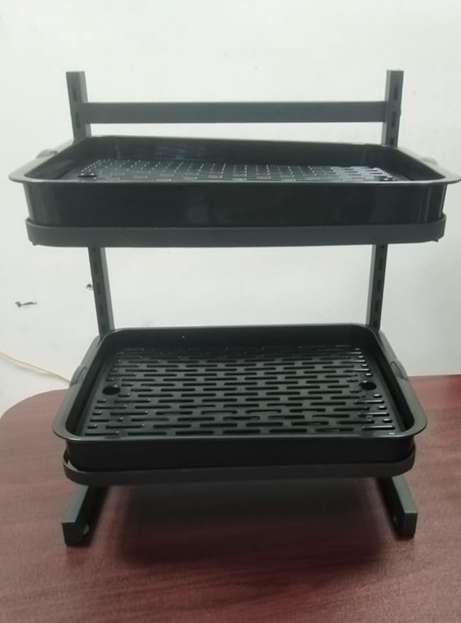 طابقين للتخزين: تحتوي على رفّين، مما يوفر مساحة مضاعفة لتجفيف وترتيب الأكواب والأطباق الصغيرة بشكل فعال.