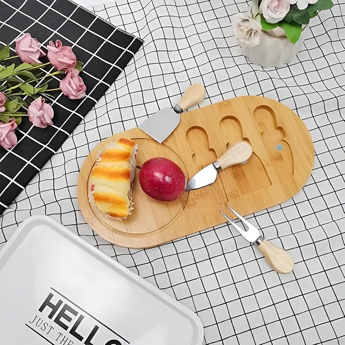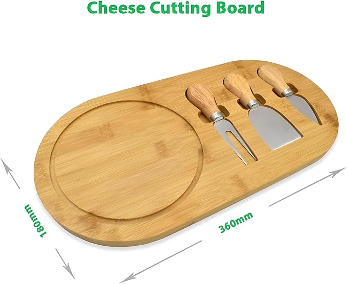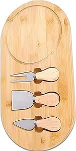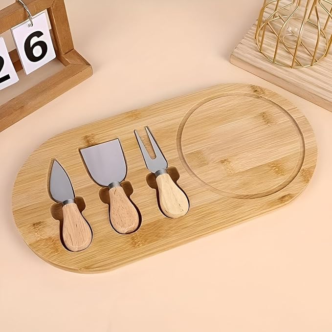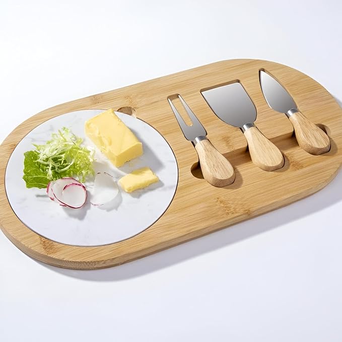 لوح تقديم جبن ومقبلات من البامبو – مزود بـ 3 سكاكين صغيرة
