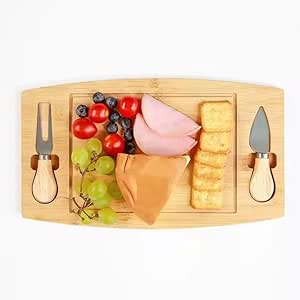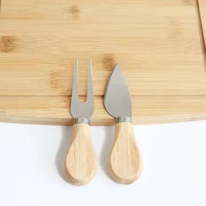 لوح جبن من البامبو مع 2 أداة تقديم – صينية تقديم خشبية