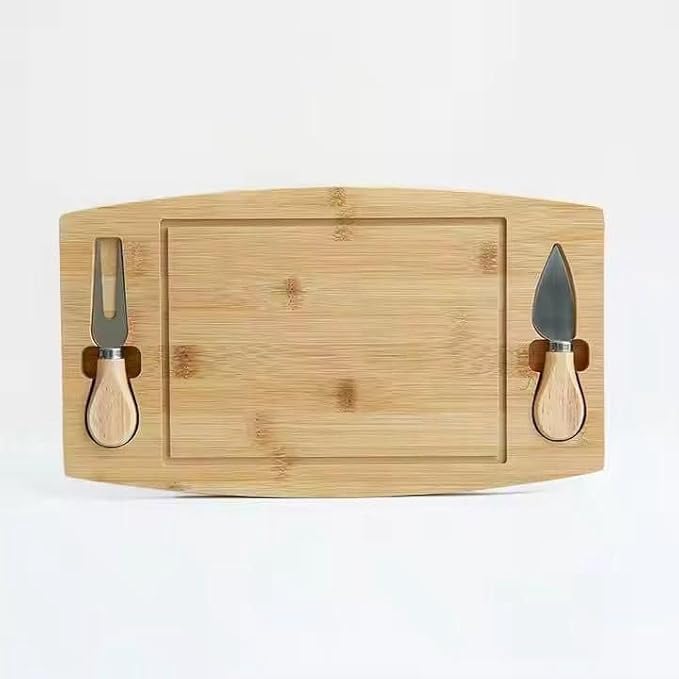 لوح تقديم مصنوع من خشب البامبو الطبيعي عالي الجودة، مثالي لتقديم الجبن، المقبلات والوجبات الخفيفة. يأتي مع قطعتين من أدوات التقديم ليمنحك تجربة عملية وأنيقة أثناء المناسبات أو التجمعات العائلية.
