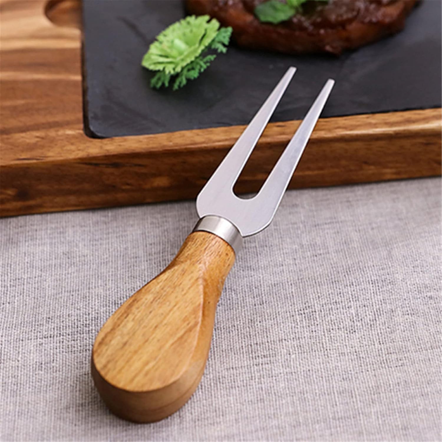 شوكة جبن من الستانلس ستيل بمقبض خشبي من الزان