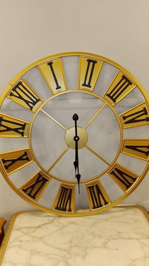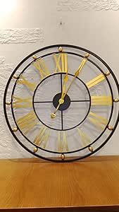ساعة حائط كلاسيكية معدنية باللون الذهبي 60 سم بتصميم روماني فاخر