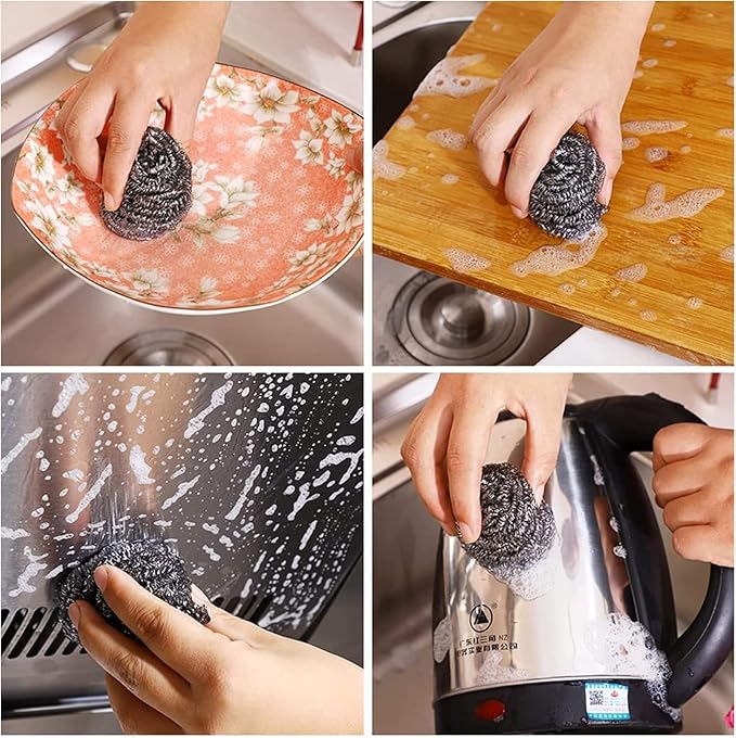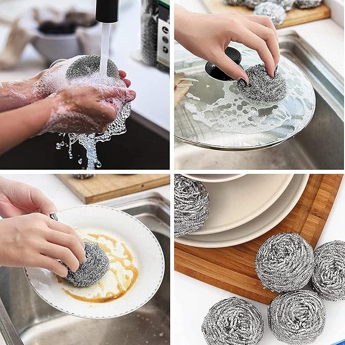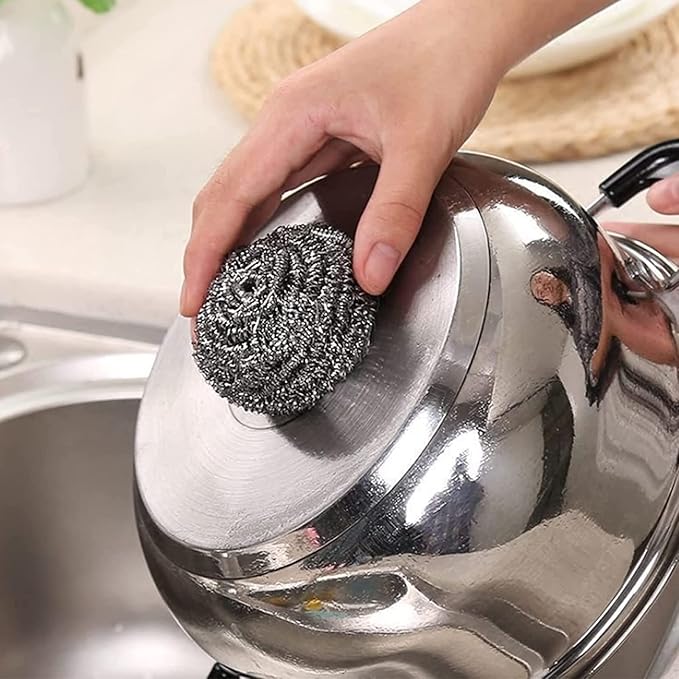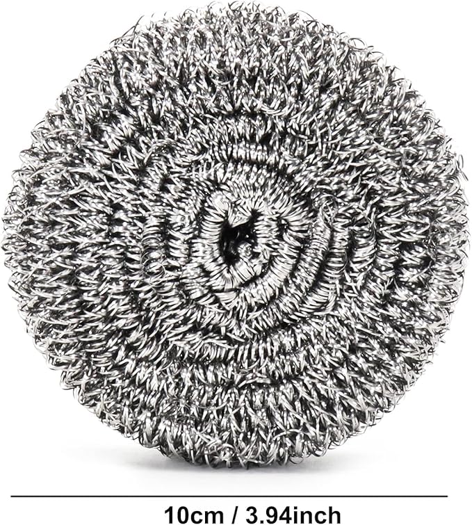 ليفة معدنية من الستانلس ستيل لإزالة الأوساخ والدهون الصعبة من الأواني والمقالي وأدوات المائدة (مقاس 10 سم – عبوة 3 قطع)