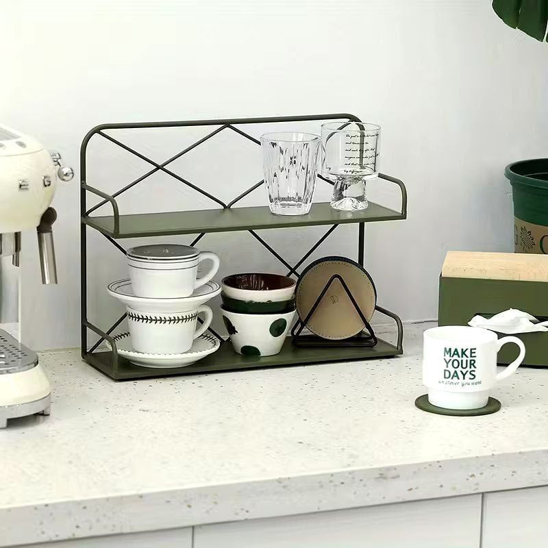 ستاند كوفي كورنر أنيق يمنح ركن القهوة طابعًا راقيًا ويحوّله إلى مساحة منظمة ومبهجة. مصنوع من معدن قوي عالي الجودة ليضيف لمسة ديكور فاخرة بفضل تصميمه العصري بخطوط متقاطعة تزيد من جمال أي زاوية في المطبخ أو غرفة المعيشة. يساعدك على ترتيب الأكواب، منشفة القهوة، والأطباق الصغيرة بشكل عملي ومنسق يضفي راحة ومتعة على لحظات قهوتك اليومية.