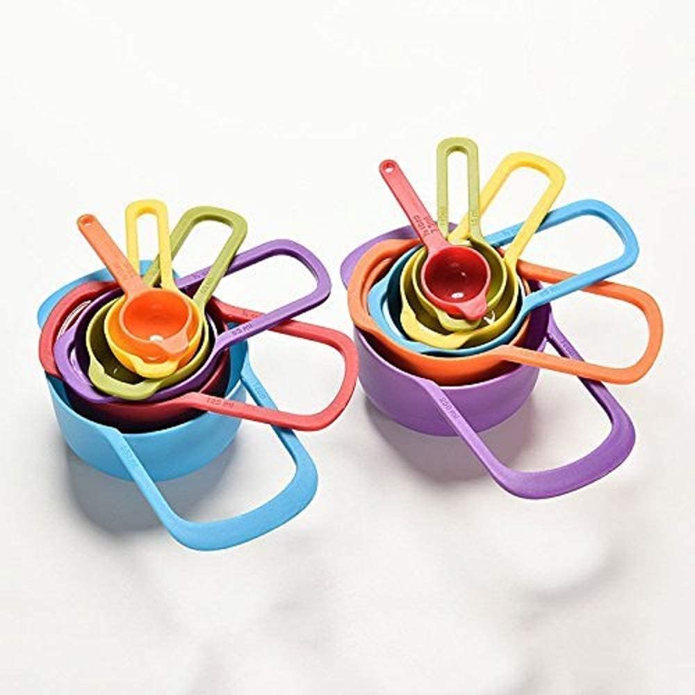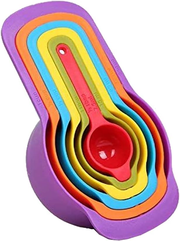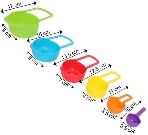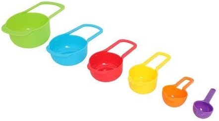 طقم قياس عملي وملون مكون من 6 قطع من الملاعق والأكواب البلاستيكية المصممة لسهولة ودقة القياس أثناء الطبخ والخبز. يتميز بألوان زاهية تساعد في التعرف السريع على المقاسات المختلفة، مما يجعله مثاليًا لتحضير الكيك، المعجنات، والحلويات بدقة. مصنوع من بلاستيك آمن وخفيف الوزن وسهل التنظيف.