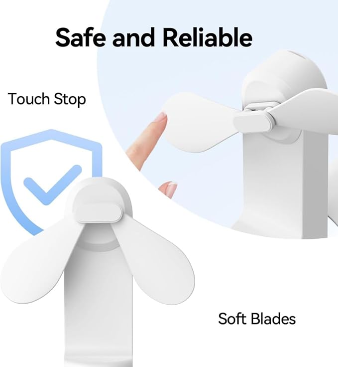 مروحة قوية ومحمولة: على الرغم من حجمها الصغير، توفر المروحة هواءً قويًا لتمنحك شعورًا بالبرودة في الأيام الحارة.