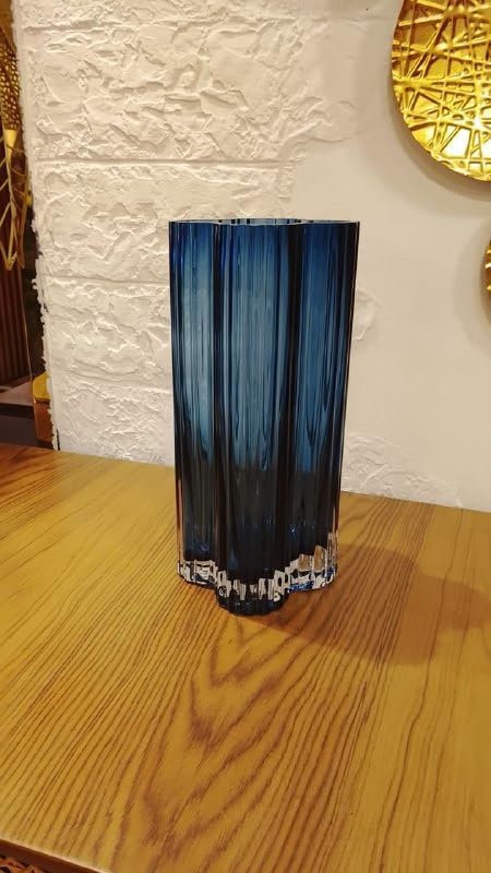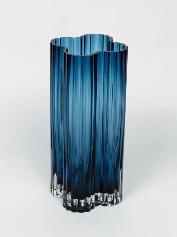 مزهرية زجاجية بتصميم الموج باللون الأزرق الداكن 25 سم
