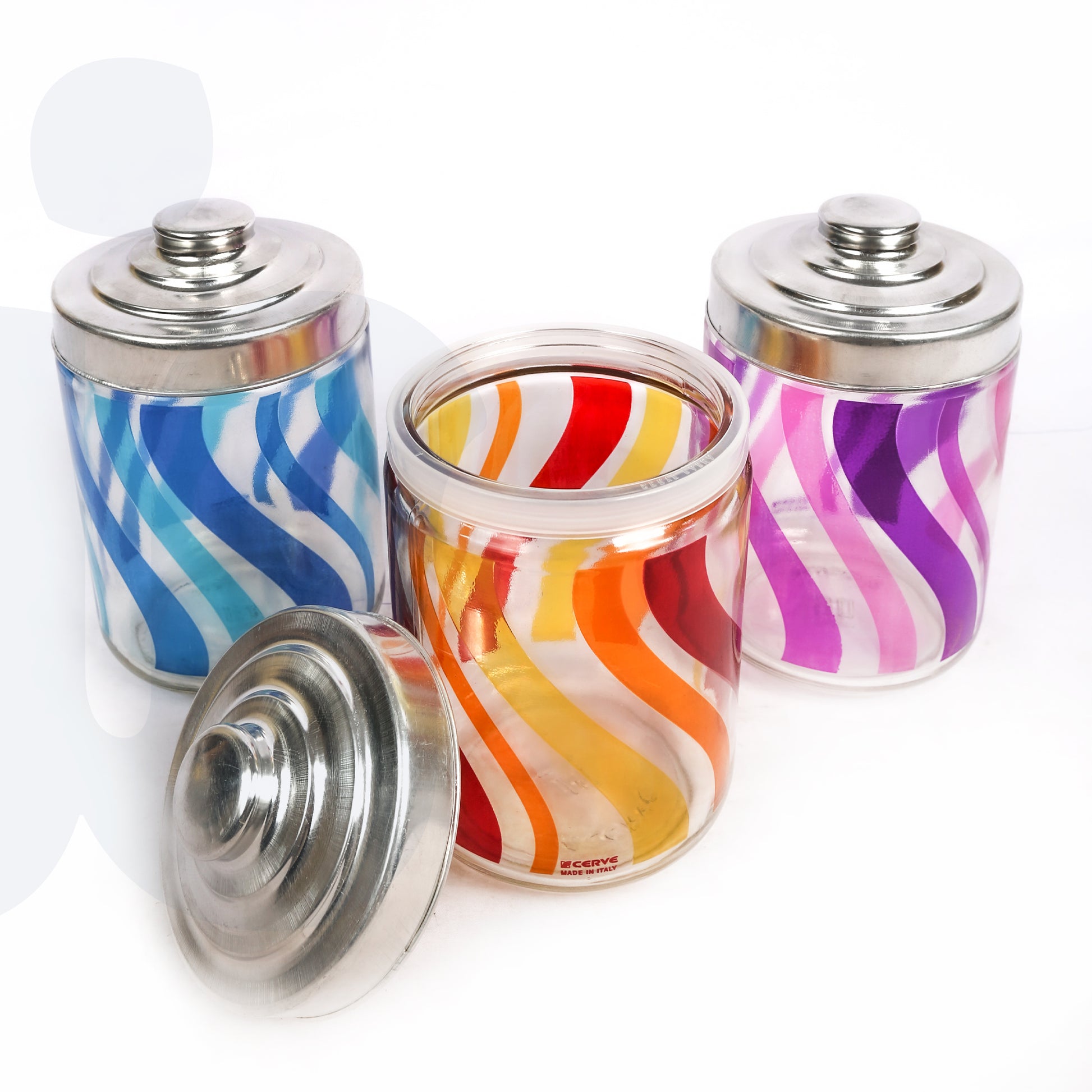 طقم برطمانات زجاج مزخرفة بغطاء محكم لحفظ المواد الغذائية – 3 قطع