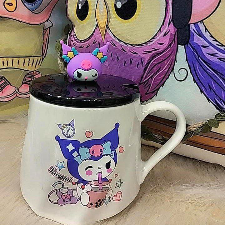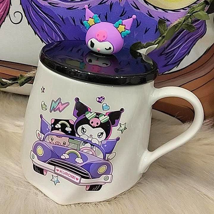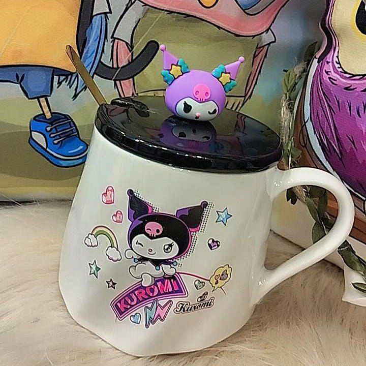 مج بورسلين ديزني بغطاء ومقبض سيليكون ومعلقة استانلس