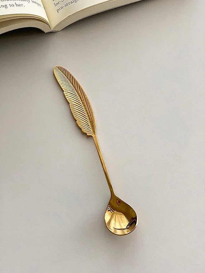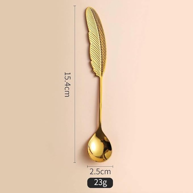 تصميم فني: تتميز الملاعق بتصميم على شكل ريشة، مما يمنحها مظهرًا فريدًا ومبدعًا يضيف لمسة جمالية إلى أي طاولة.