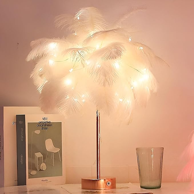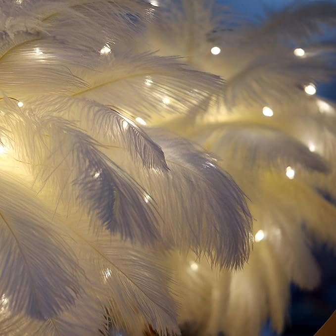 أباجورة على شكل ريش بإضاءة ليلية ناعمة – تصميم أنيق لغرف النوم