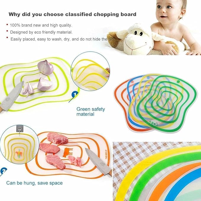 نظّم تحضير الطعام في مطبخك مع مجموعة ألواح التقطيع المرنة هذه. بفضل تصميمها العملي، يمكنك الآن فصل الأطعمة المختلفة وتجنب التلوث المتبادل.
