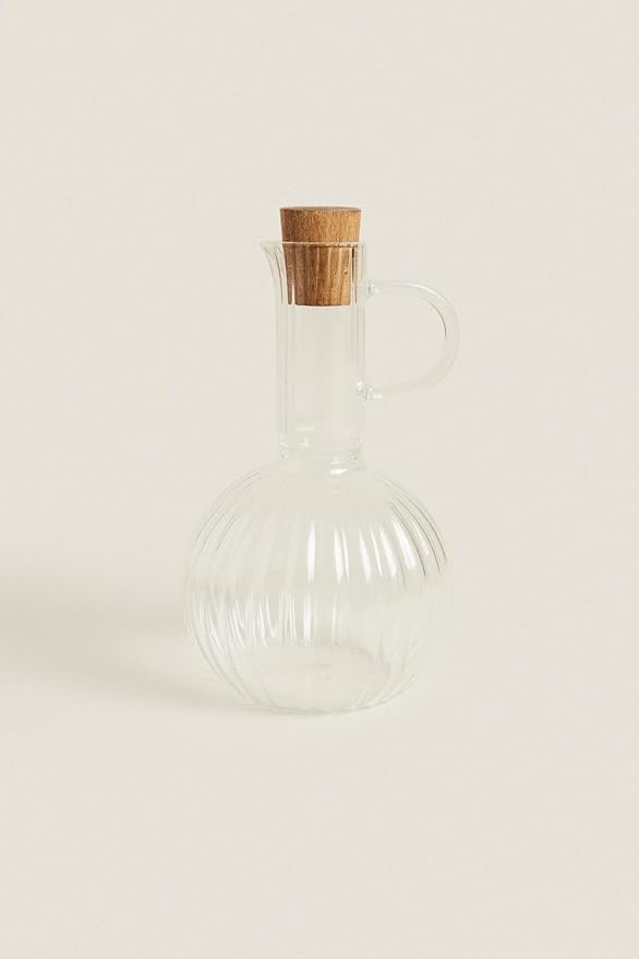 تصميم أنيق: زجاج مضلع مع سدادات خشبية لمظهر راقٍ مثالي لتقديم الزيت والخل.