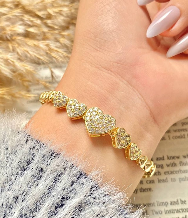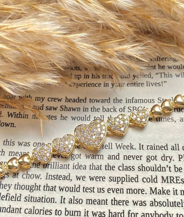 إسورة مطلية بالذهب – تصميم قلوب مرصعة بالفصوص اللامعة