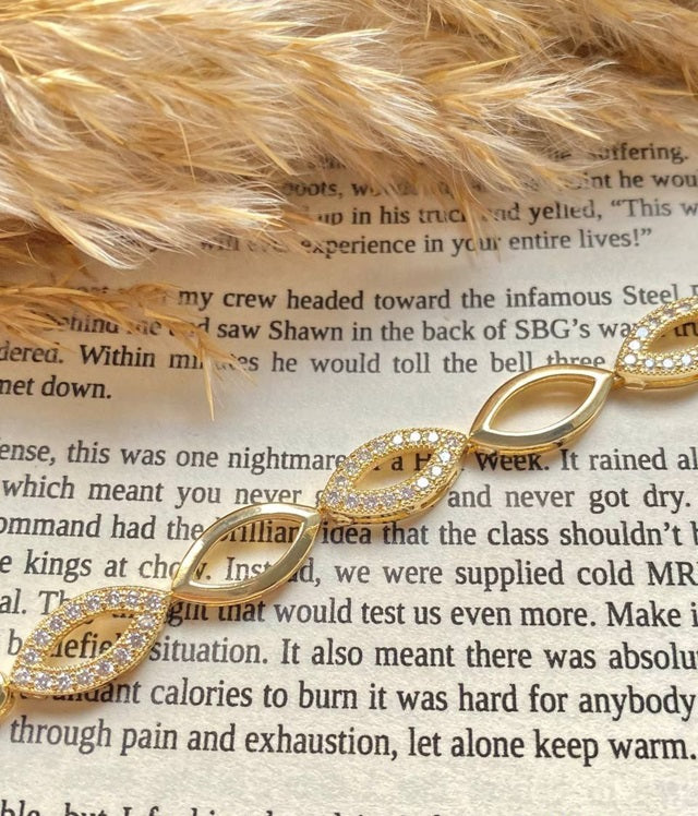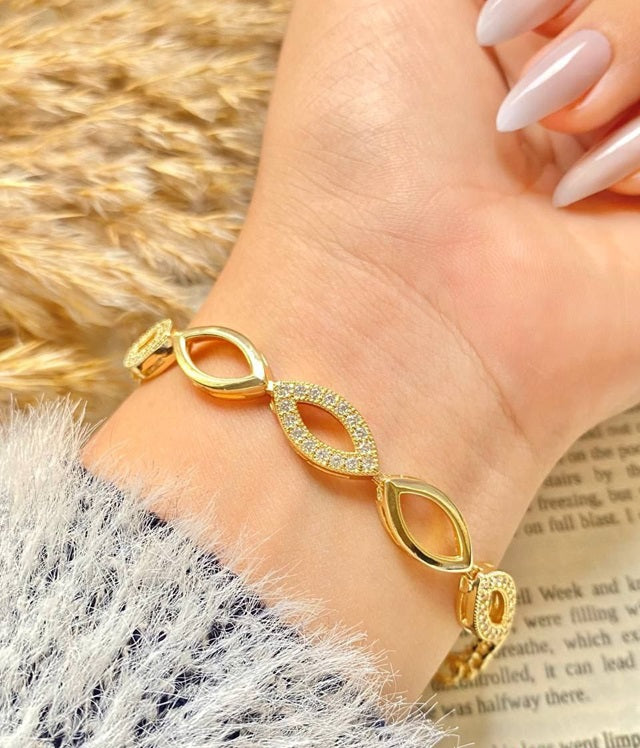 إسورة مطلية بالذهب – تصميم ماركيز بفصوص زركون لامعة