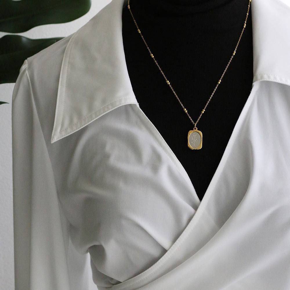 سلسلة أنيقة بتصميم وردة ذهبية تضيف لمسة من الأنوثة والرقي إلى أي إطلالة. تتميز بدلاية على شكل وردة مطلية بالذهب بتفاصيل دقيقة تبرز جمال التصميم. مصنوعة من ستانلس ستيل عالي الجودة لضمان المتانة ولمعان يدوم طويلاً دون صدأ أو بهتان. مثالية للإطلالات اليومية أو المناسبات الخاصة وتُعد هدية رومانسية مميزة.