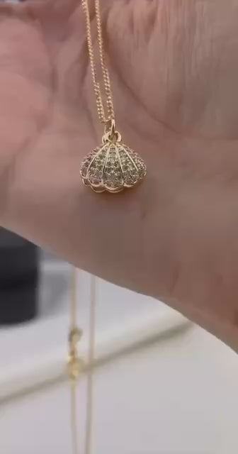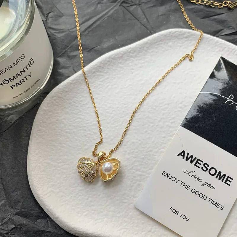 سلسلة ذهبية بدلاية صدفة ولؤلؤة وزركون على شكل قلب