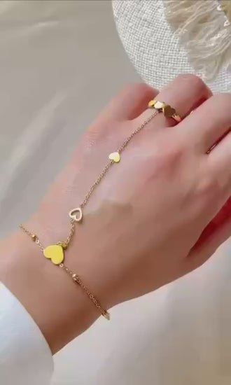 إسورة يد بخاتم متصلة بسلسلة من الستانلس ستيل الذهبي – تصميم قلوب