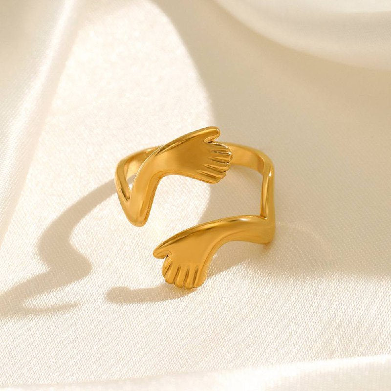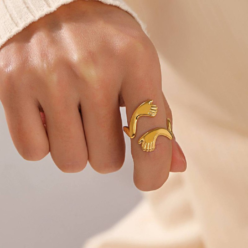 خاتم أنيق مصنوع من الستانلس ستيل باللون الذهبي، بتصميم مستوحى من الحضن يضفي لمسة من الأنوثة والدفء. يجمع بين الرقي والبساطة ليكون قطعة مثالية للإطلالات اليومية أو للمناسبات الخاصة. تصميمه المتين والخفيف يجعل ارتداؤه مريحًا طوال اليوم، كما يمكن أن يكون هدية رمزية رائعة تعبر عن الحب والاهتمام.