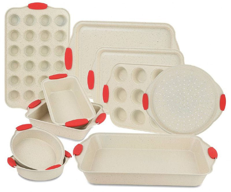 طقم قوالب كيك فاخر مكون من 10 قطع بأشكال متنوعة مصنوع من خامة الجرانيت عالية الجودة يتميز بمقاومته للالتصاق وسهولة التنظيف مزود بيد من السيليكون لسهولة الحمل والاستخدام مثالي لتحضير المخبوزات والكيك بأشكال جميلة ومتنوعة
