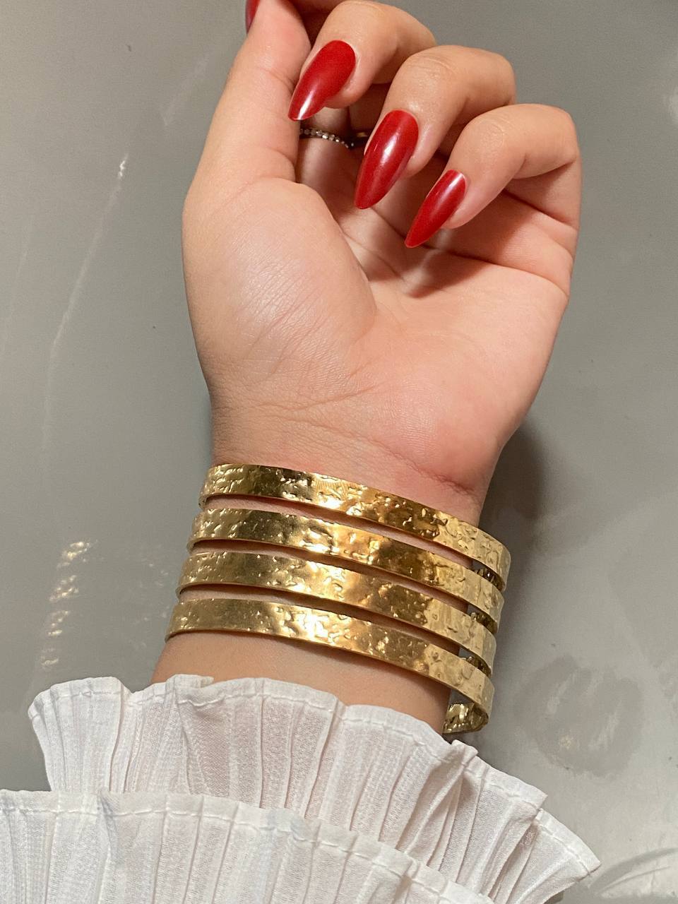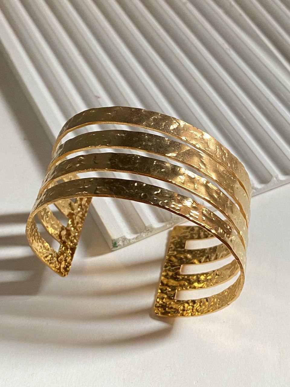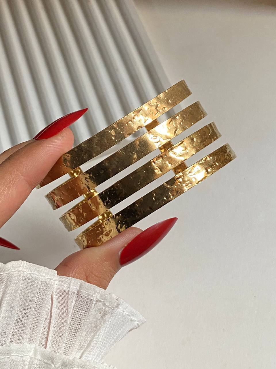 إسورة مفتوحة باللون الذهبي بتصميم معدني مطروق