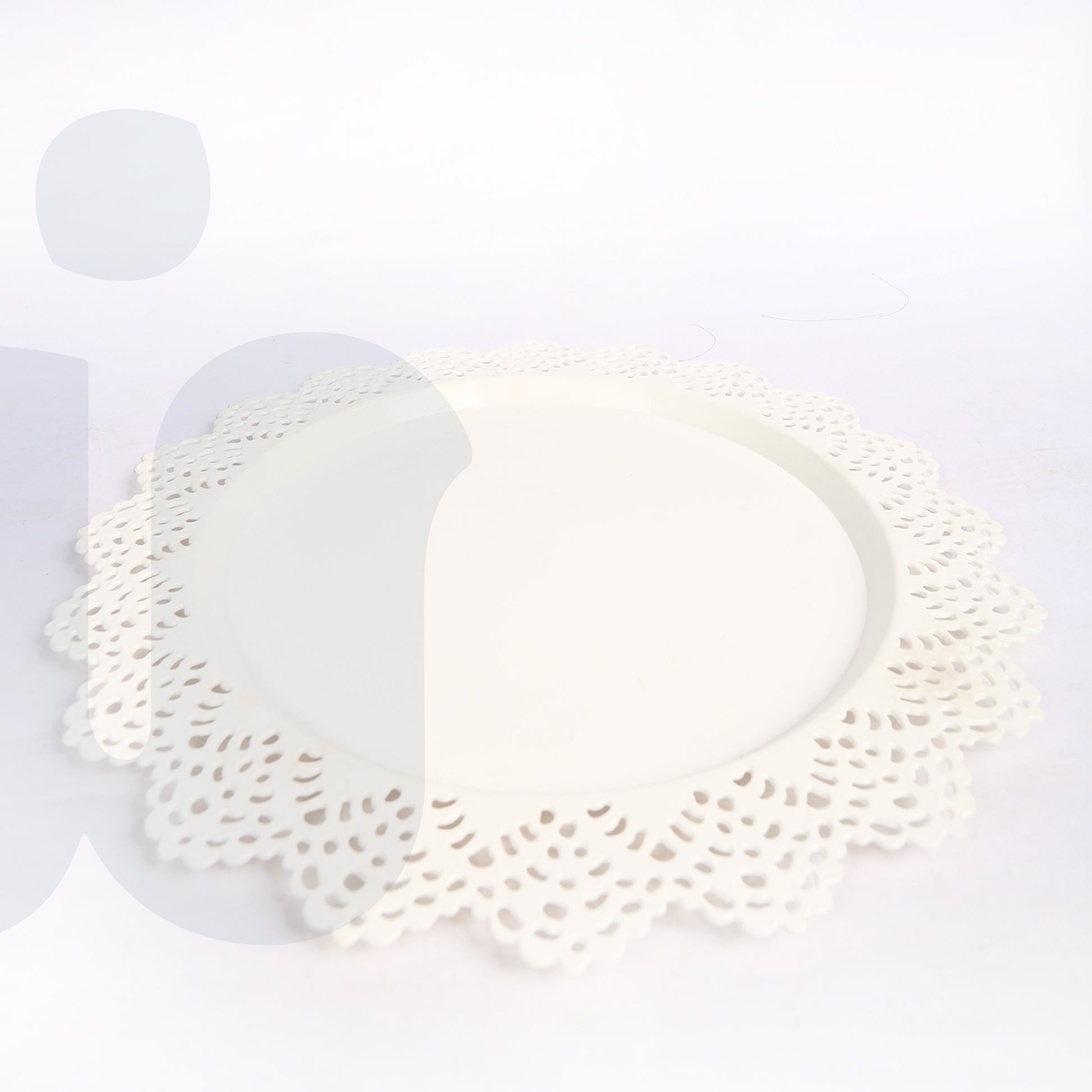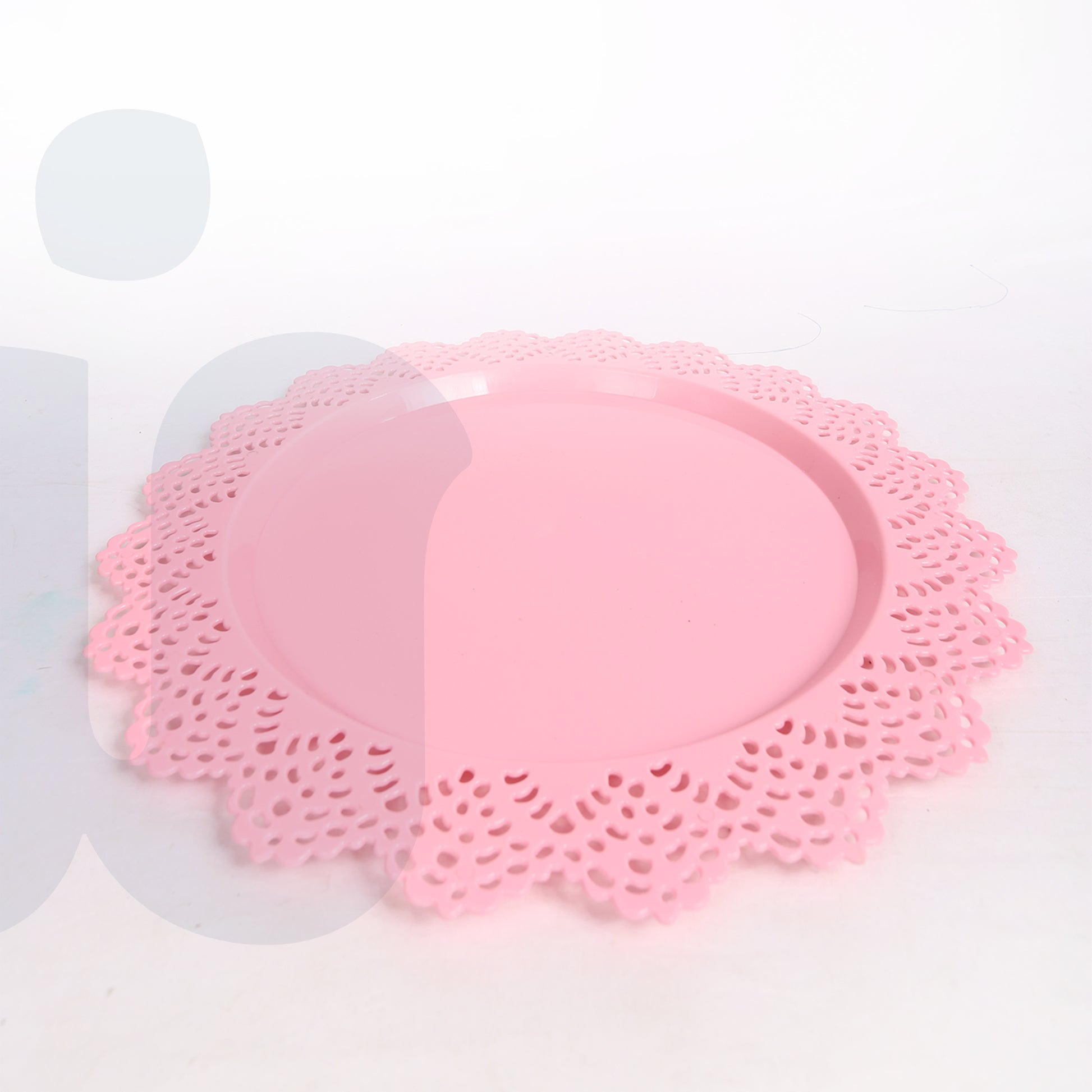 صينية تقديم كبيرة بتصميم دانتيل متوفر بلونين ابيض وبينك