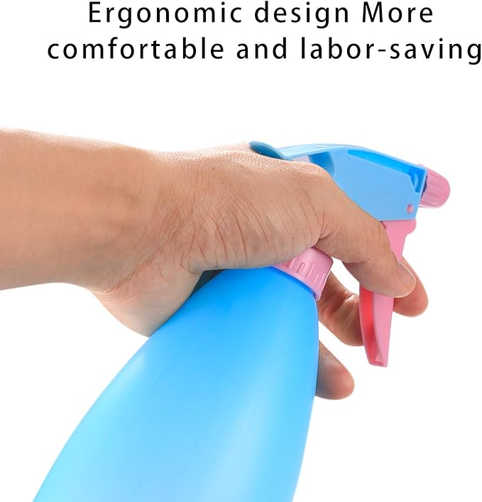 طقم قطعتين: تحتوي العبوة على زجاجتين، بألوان مختلفة (عادةً الوردي والأزرق)، مما يسمح لك بتخصيص كل زجاجة لاستخدام معين (مثلاً واحدة للري وواحدة للتنظيف).