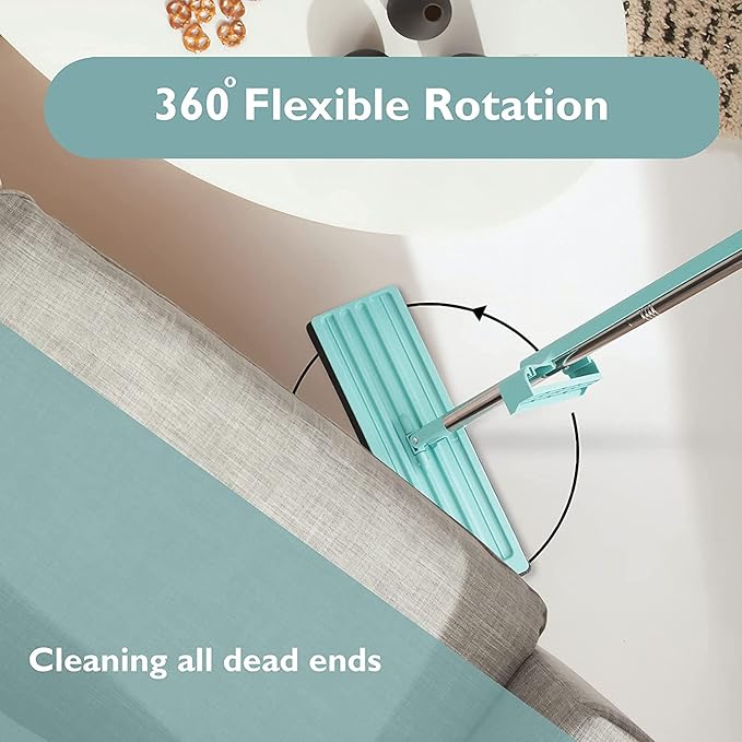 وصول إلى الأماكن الصعبة: رأس الممسحة المسطح والقابل للدوران بزاوية 360° يسمح لك بتنظيف تحت الأثاث وفي الزوايا الضيقة بسهولة.