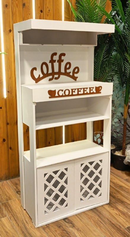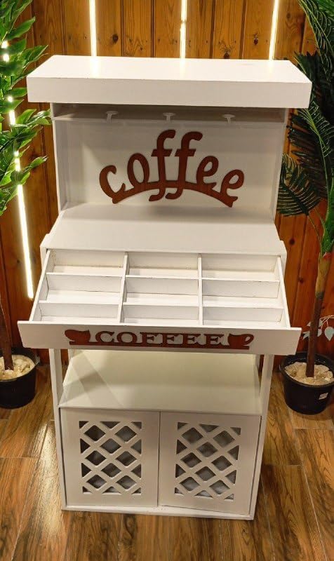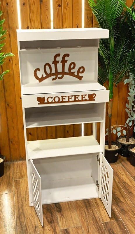 مساحة تخزين واسعة: تأتي مع أدراج تخزين عملية و رفوف مفتوحة، مما يوفر مساحة كافية لتنظيم الأكواب، أدوات المطبخ، والقهوة.
