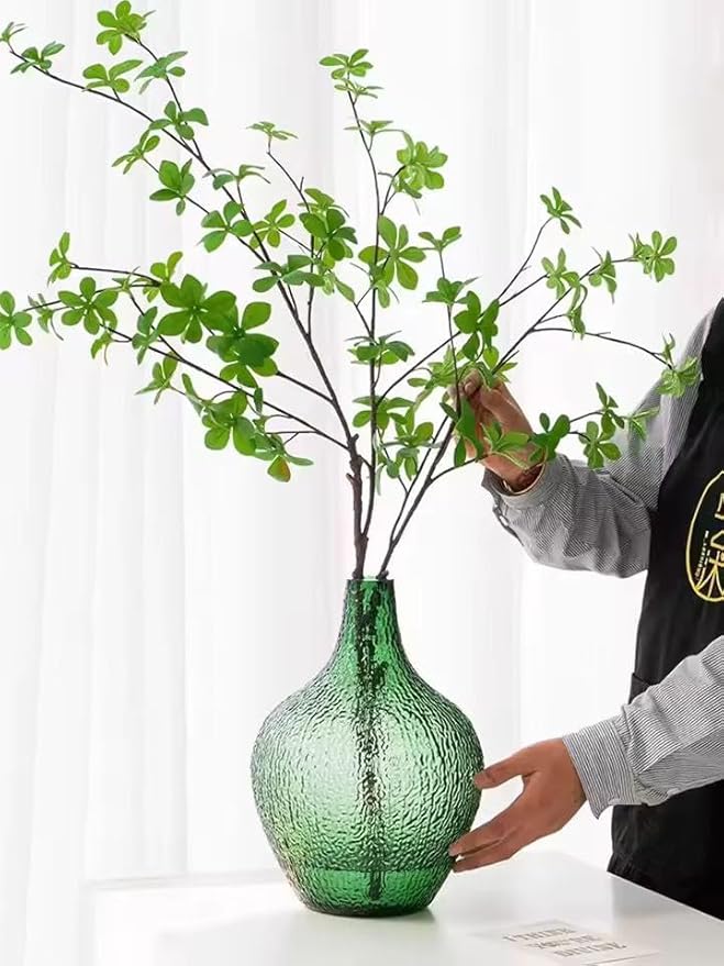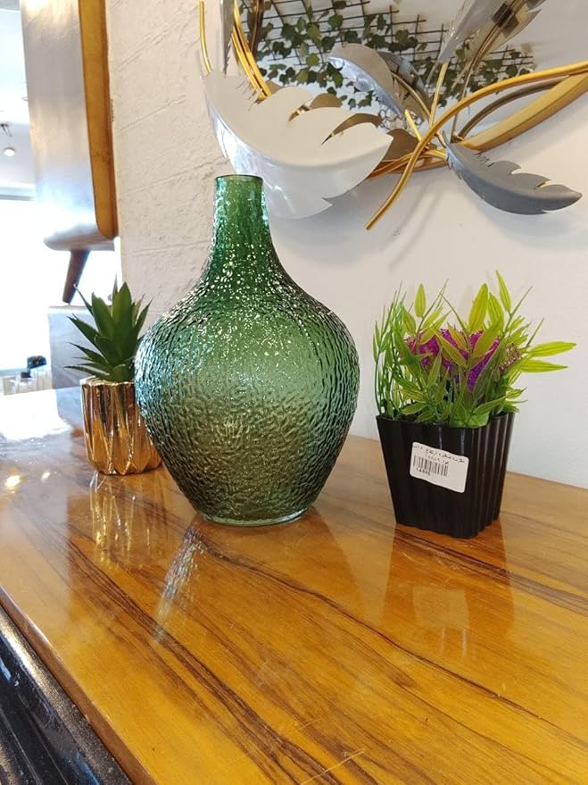 مزهرية زجاجية خضراء منقوشة بتصميم عصري 25 سم