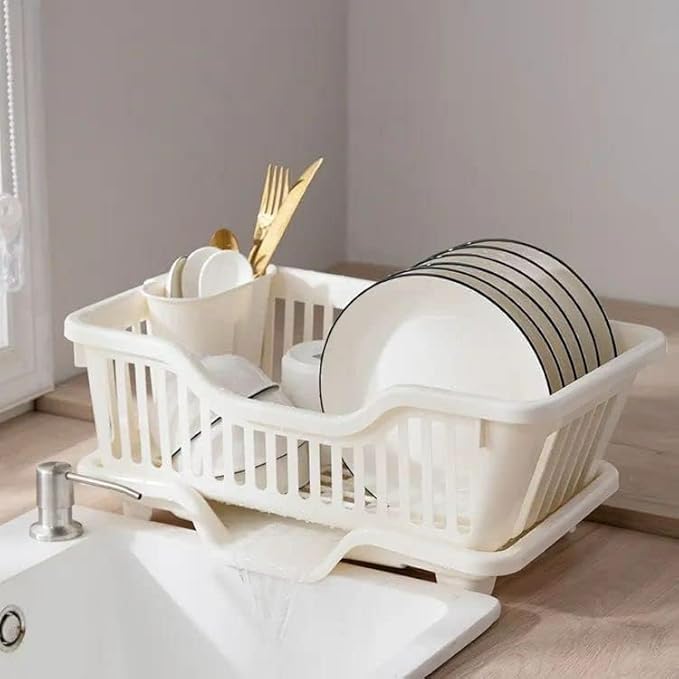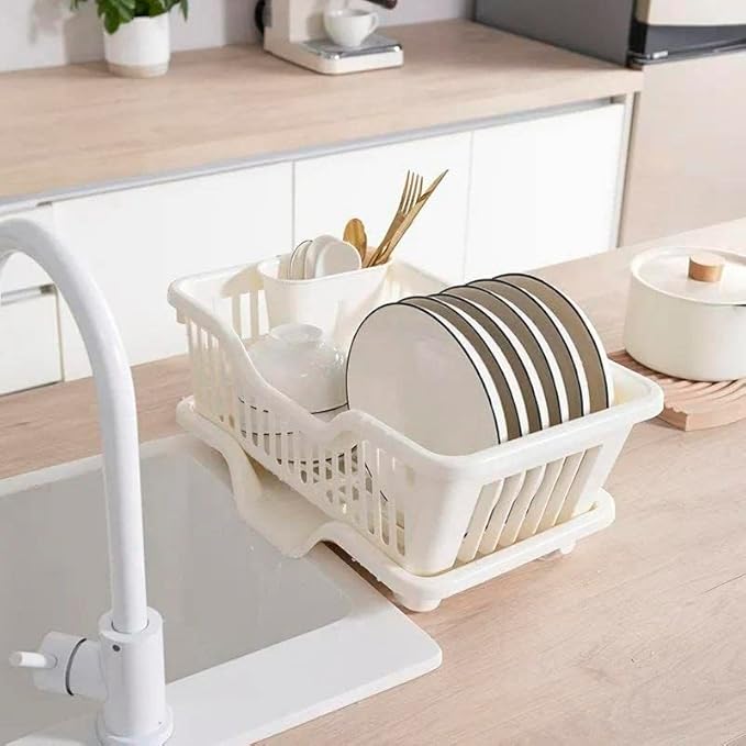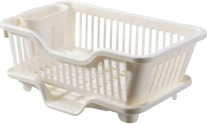 حامل أطباق بلاستيك مع صينية تصريف – منظم أدوات المطبخ (متعدد الألوان)