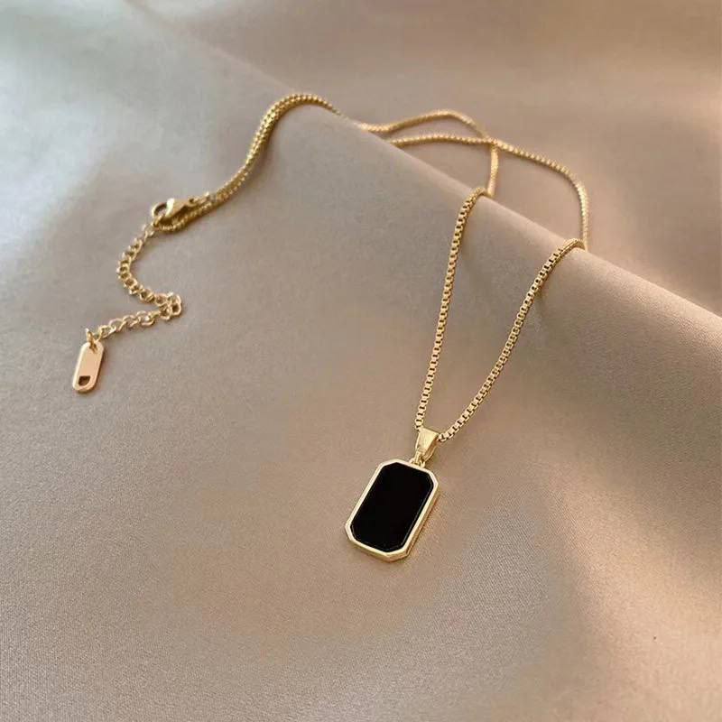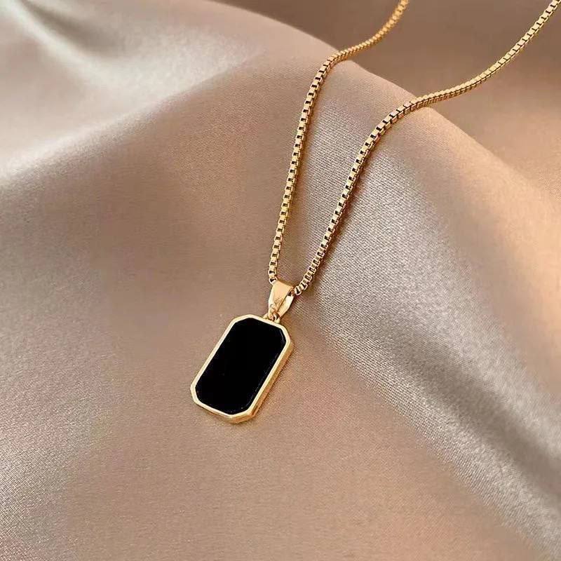 - قلادة مستطيلة أنيقة باللون الأسود العصري.