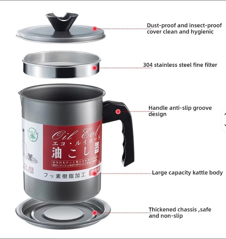 سعة كبيرة 1.7 لتر مثالية لتصفية الزيت أو تخزين السوائل